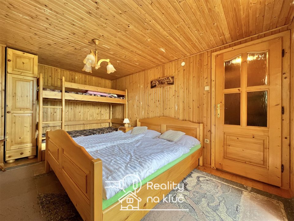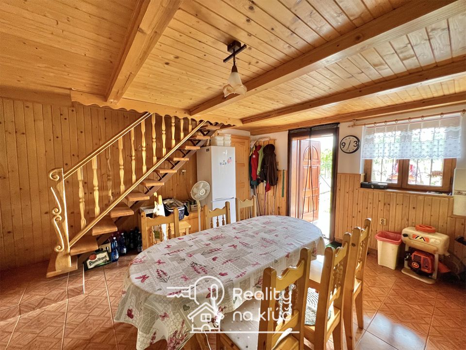 Reality na kľúč Vám ponúka na predaj krásnu zariadenú chatu s vinohradom v obci Trávnica. Chata Zastavaná plocha chaty je 86m2. Chatka je murovaná a zateplená polystyrénom. Strešná krytina je plech. Okná sú drevené dvoj-sklo so sieťkami. V chate boli menené: drevené parkety, dlažba, drevené okná so sieťkami, kuchynská linka ( plynový sporák a elektrická rúra). Kúrenie chaty je zabezpečené krbom, ktorý disponuje prieduchmi do ostatných izieb a podlahovým kúrením v obývacej miestnosti a kúpeľni. Kapacita chaty je 12 lôžok a vo vedľajšej miestnosti sú 4 lôžka. Chata sa predáva tak ako je na fotografiách. Ohrev vody je zabezpečený elektrickým bojlerom. Investičná príležitosť prenájmu chaty, možnosť prenajímať celú chatu alebo polovicu chaty. Dispozícia Chata pozostáva z: kuchyne, obývacej miestnosti, špajze, 2 kúpeľní spojených s toaletou, balkónu, povaly, pivnice, troch izieb na poschodí, vedľajšej miestnosti s 1 izbou. Pozemok Pozemok má rozlohu 2 627m2. Na pozemku sa nachádza chata, vedľajšia miestnosť, veľký altánok a vinohrad. Inžinierske siete na pozemku: elektrina, voda a žumpa. Z ovocných stromov sa na pozemku nachádzajú hrušky, jablká, čerešne, slivky, broskyne a marhule. Výhody • 5 minút autom od termálneho kúpaliska Podhájska • lokalita ideálna na vonkajšie grilovanie, relax,… • krásne prostredie • vinohrad • investičná možnosť – možnosť chaty na prenájom Cena Cena chaty s vinohradom je 129 000€.